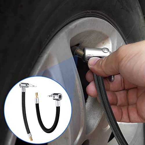 【Materiale di alta qualità】 L'adattatore del tubo di gonfiaggio del pneumatico adotta un tubo di gonfiaggio intrecciato esterno resistente alle alte pressioni e l'adattatore della valvola del pneumatico è realizzato in ottone cromato, che è durevole, non facile da rompere e ha una lunga durata.La valvola può resistere a pressioni fino a 300 PSI.