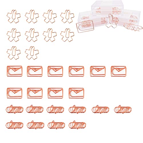 30 Pezzi Graffetta Carina, Graffetta Creativa, Graffetta in Oro Rosa con Scatola Portaoggetti per Scuola, Ufficio, Smistamento Carta (Love, Busta, Fiore)