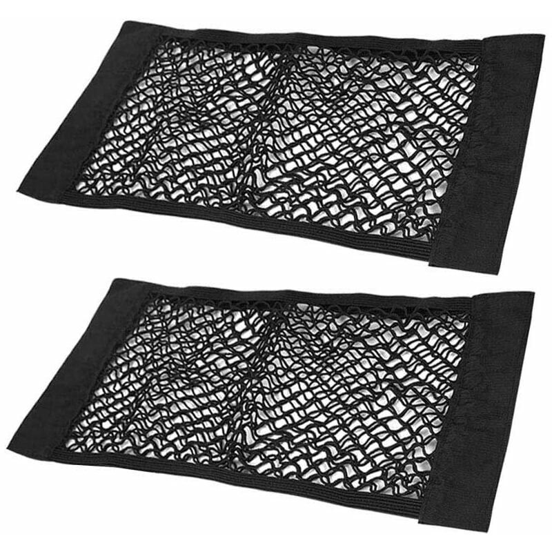 Maggiore spazio di archiviazione: rete di archiviazione sicura per auto/camion/camper da 2 pezzi. Aggiungi facilmente spazio alla tua auto per kit di emergenza, generi alimentari, giocattoli, articoli da viaggio, detergenti, borse riutilizzabili e altro ancora. Universale - Dimensioni: 15,7 x 9,8 pollici, l'organizer per auto può essere fissato facilmente e in modo sicuro alla moquette o al pannello laterale. e organizzare il tuo prossimo viaggio in campeggio o on the road