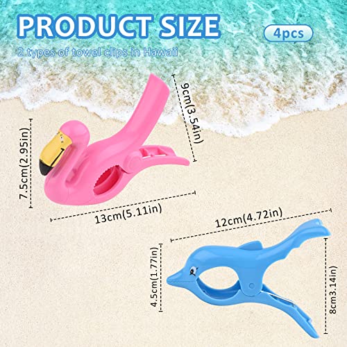 4 Pezzi Grandi Mollette da Spiaggia Stile Delfino Fenicottero Mollette per Bucato Plastica Antivento Clip per Asciugamani da Spiaggia Mollette per Vestiti in Plastica Clip Piscina Per Sedie a Sdraio