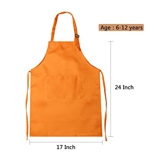 6 Pezzi Set Grembiule e Cappello da Cuoco per Bambini, Grembiuli Regolabili per Bambini da Cucina con 2 Tasche per Indumenti da Cucina (M, Rosso, Arancione, Viola)