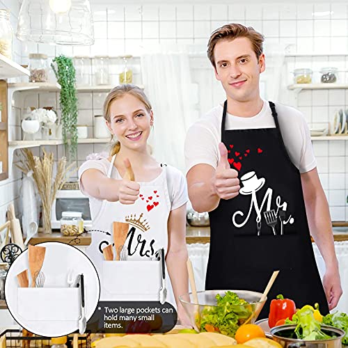 2 Pezzi Grembiuli da Cucina per Coppia, Grembiuli da Cuoco, Grembiuli Impermeabili per Uomo Donna, Regalo di Nozze per Coppia, Perfetto per Matrimonio, Fidanzamento, San Valentino (Bianco e Nero)