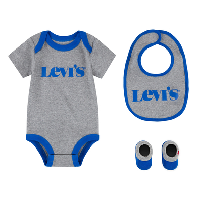 Questo bellissimo set grigio in 3 pezzi, taglia unica, è composto da un body, un bavaglino e dei calzini. Il body a maniche corte con dettagli blu e logo print sul petto offre una sensazione confortevole grazie al cotone morbido. I bottoni a pressione nascosti sul fondo rendono facile per te vestire e svestire il tuo preferito. Il simpatico bavaglino con dettagli blu si abbina perfettamente al body e ai calzini dello stesso colore. I materiali morbidi offrono un comfort ottimale. Dettagli del prodotto: Materiale corpo: 100% cotone materiale pettorina: 100% cotone Materiale calze: 62% cotone, 34% poliestere, 4% spandex Lavabile fino a 30 °C Tabella delle taglie