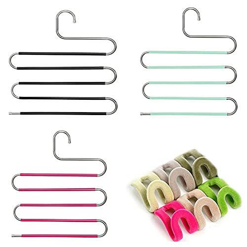 3 Pezzi Grucce per Pantaloni,Grucce Multiple per Pantaloni,Pantaloni Appendini S-Type,con 6 Floccaggio Ganci,Antiscivolo,per Pantaloni Jeans Asciugamano Tie Sciarpa