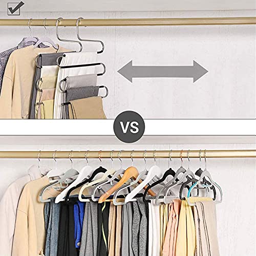 ✔Risparmio di spazio: grucce per pantaloni a 5 livelli. Ogni appendiabiti può contenere almeno 5 jeans, pantaloni o altri indumenti. Massimizza per risparmiare spazio nell'armadio. Mini gancio può essere utilizzato per appendere su un appendiabiti per collegare il prossimo appendiabiti per organizzare i tuoi vestiti.
