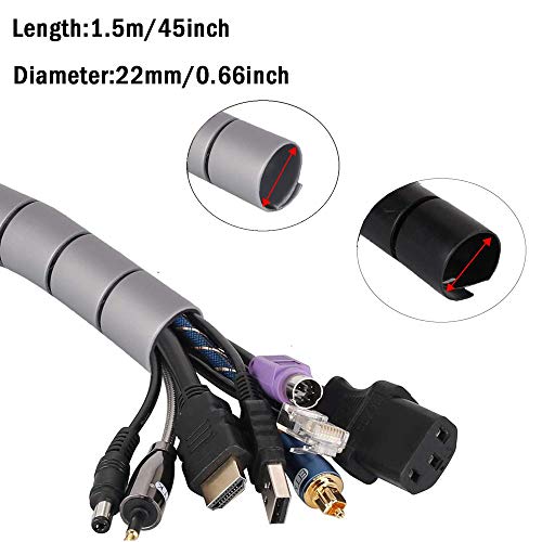 2 Pezzi Guaina per Cavi, Raccogli Cavi, Manicotto per La Gestione Dei Cavi, DIY Flessibile PE Organizer Ordinato a Spirale per PC, TV, Computer, Organizer per cavi per Casa e Ufficio (Nero, Grigio)