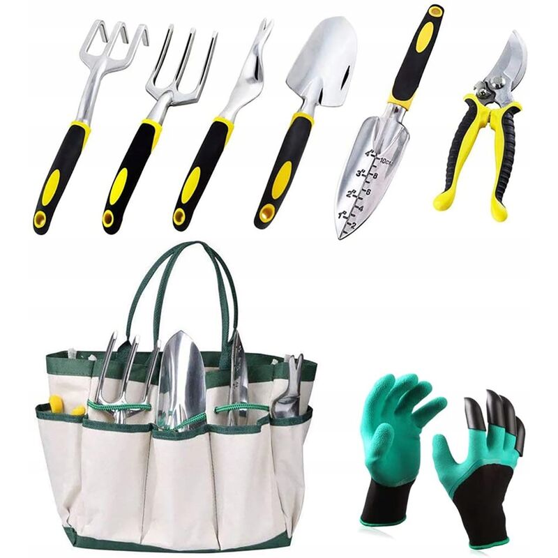 8 tipi di utensili da giardinaggio, tra cui borse ordinate, una grande pala, un rastrello, una pala di bilanciamento, una forchetta a tre pin, una lotta di erba, la lotta in stile, le forbici in acciaio inox, i guanti filmati comodo presa: Il design ergonomico riduce la fatica delle mani e delle braccia durante il lavoro. Strumenti di alta qualità: la superficie della pala è protetta da una pala, che impedisce alla ruggine ed è facile da pulire;