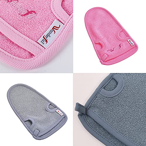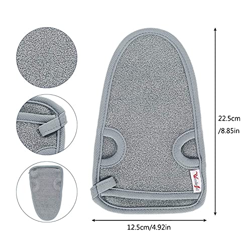 Dimensioni: la dimensione del guanto da bagno esfoliante è 12,5 * 22,5 cm/4,92 * 8,85 pollici. 2 colori, grigio e rosa, adatti per l'uso familiare. Puoi appendere il guanto per il piccolo anello sul lato dopo l'uso.
