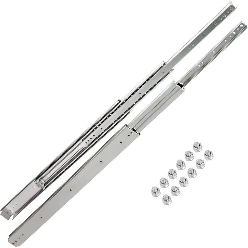 Cassetti Scorrevoli a Estrazione Totale Le guide per cassetti in acciaio laminato a freddo sono capaci di elevata durezza con eccellente stabilità e durata. Inoltre, trarrai vantaggio dal dispositivo ultra sicuro, adatto e a basso rumore con una guida dettagliata e pratiche viti. I posti universali includono contenitori di magazzino per armadi, cassetti industriali, attrezzature commerciali, veicoli adattati, ecc. Diapositive in tre sezioni Cuscinetto in acciaio e 500 libbre Morbido e abbastanza vicino Scegli la taglia giusta Caratteristiche & Dettagli Guide a Tre Sezioni: 1 paio di 36" / 91,44 cm di lunghezza, 3" / 7,6 cm di larghezza, 0,75" / 1,9 cm di spessore. Le guide per cassetti pieghevoli e a estrazione totale sono composte da tre sezioni e possono essere completamente estratte per utilizza lo spazio del cassetto (dimensioni effettive 36", misura estesa 72" / 182,88 cm). Inoltre, i cassetti scorrevoli sono progettati per garantire che i cassetti vengano spinti e tirati senza