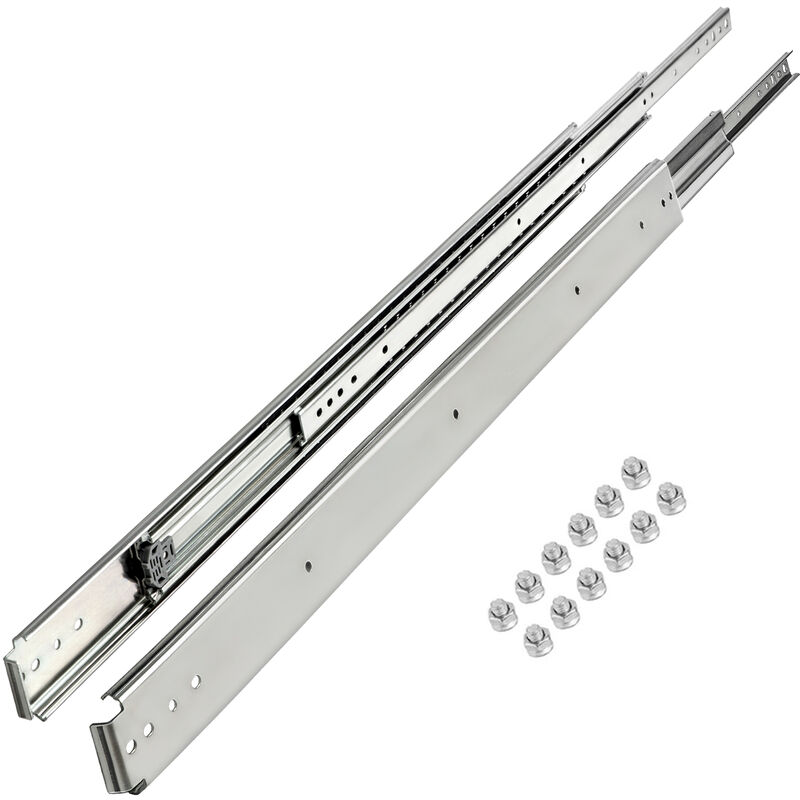 Cassetti Scorrevoli a Estrazione Totale Le guide per cassetti in acciaio laminato a freddo sono capaci di elevata durezza con eccellente stabilità e durata. Inoltre, trarrai vantaggio dal dispositivo ultra sicuro, adatto e a basso rumore con una guida dettagliata e pratiche viti. I posti universali includono contenitori di magazzino per armadi, cassetti industriali, attrezzature commerciali, veicoli adattati, ecc. Diapositive in tre sezioni Cuscinetto in acciaio e 500 libbre Morbido e abbastanza vicino Scegli la taglia giusta Caratteristiche & Dettagli Guide a Tre Sezioni: 1 paio di 76,2 cm di lunghezza, 7,6 cm di larghezza, 1,9 cm di spessore. Le guide per cassetti pieghevoli e a estrazione totale sono composte da tre sezioni e possono essere completamente estratte per utilizza lo spazio del cassetto (dimensione reale 30", misura estesa 60" / 152,4 cm). Inoltre, i cassetti scorrevoli sono progettati per garantire che i cassetti vengano spinti e tirati senza problemi. Acciaio e
