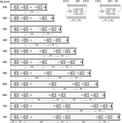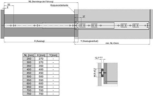 2 paia (4 PEZZI) Guide a Estrazione Totale per cassetti - marca GAMET- argento mm 300 (chiusa) -acciaio zincato- Capacita' di Carico 45 Kg