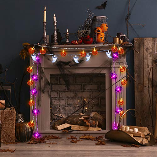 ★ Confezione da 3 luci di Halloween: riceverai 3 set di zucche arancioni, pipistrelli viola, fantasmi bianchi. A differenza di altri 10 o 20 LED, ogni stringa di Halloween ha 30 LED, ha totalmente 3 x 30 LED, ogni stringa di 3 m di lunghezza. Soddisferanno le tue diverse esigenze in feste a tema Halloween.