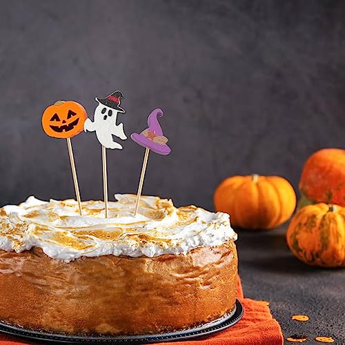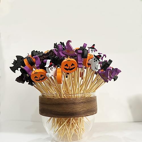 100 pezzi Halloween cocktail Picks zucca ragno cappello fantasma o trattamento pipistrello bambù stuzzicadenti antipasto bambù per Halloween Holiday Home Party Maskerade Trucco Trucco Cake Decorazione