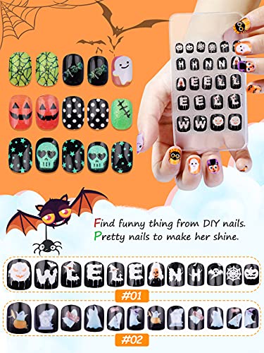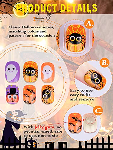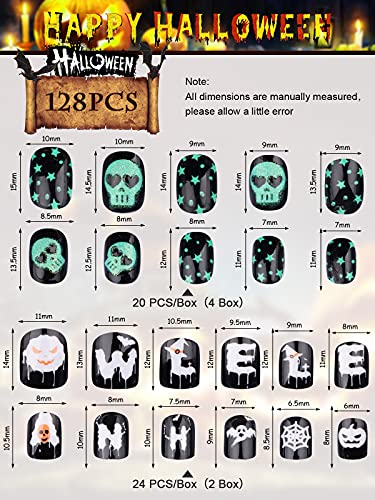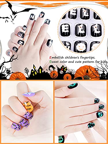 128 Pezzi Halloween Unghie Finte per Bambini, EBANKU Corte Pre-colla Unghie Artificiale per Bambini Corti, Unghie Finte Corte a Copertura Totale per Bambini per Decorazioni Manicure
