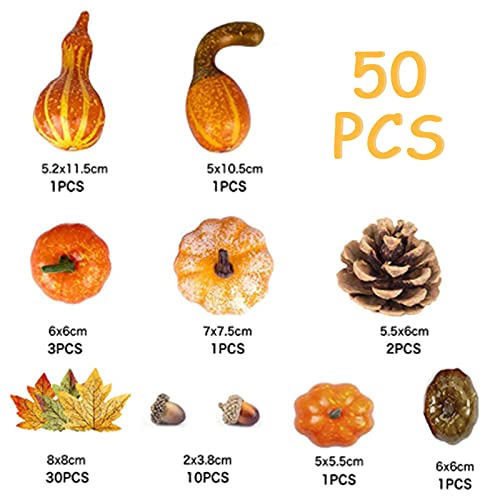 50 Pezzi Halloween Zucche Artificiali Set di Decorazioni Autunnali Mini Zucca Artificiale Pigne Ghiande Foglia D'Acero Autunno Decorazione Set per la Decorazione Della Festa Domestica