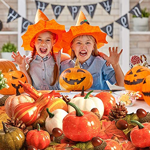 [Halloween Zucche Artificiali Set]: 8 zucche,2 pigne, 10 ghiande, 30 foglie d'acero. Può soddisfare le tue diverse esigenze per decorare la festa del Ringraziamento, Halloween e Autunno.
