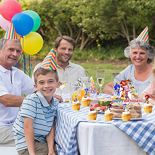 NA, 7 pezzi Hedgehog Sonic Cupcake Topper for and Ice-Cream Decorazione WOWBLING Happy Birthday Set Hedgehog Party Decorazione per bambini Party Baby Shower Decorazioni di compleanno