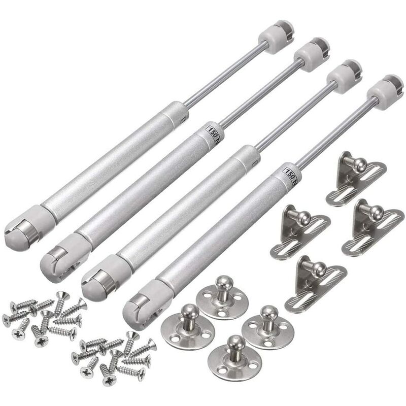 Materiale: il supporto dell'ammortizzatore a gas è realizzato in plastica ABS e robusta lega di zinco, antiruggine e molto resistente. Materiale superiore realizzato per l'albero, ad alta resistenza, durevole e pratico Forte pressione del gas - Il supporto di pressione di ciascuna molla può raggiungere 150 N (15 kg), cilindro del pistone riempito con gas inerte - azoto, comprimibilità, stabilità e sicurezza Supporto elastico - Adotta il sistema idraulico per un facile utilizzo, ammortizzatore a stadio intero e buona tenuta senza perdite d'olio Installazione stabile: facile da installare, durevole e stabile. La staffa di sollevamento a gas è adatta per armadi, armadi, ante di mobili, ecc Scenario Applicabile - Adatto a qualsiasi tipo di porta in PVC, alluminio o legno;