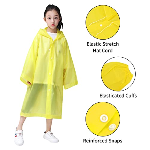2 Pezzi Impermeabile per Bambini, Riutilizzabile Addensare Eva Pioggia Poncho Unisex, Giacca con Cappuccio, Mantella Antipioggia per Attività all'aperto (Giallo + Viola)