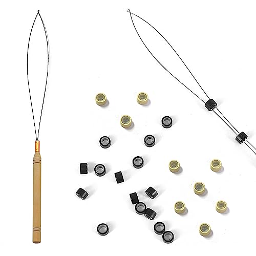 Contenuto della confezione: la confezione contiene 8 infila-aghi con manici in legno, la lunghezza totale è di circa 20,5 cm e l'uncinetto misura circa 10 cm di lunghezza. 4 clip nere a becco d'anatra da 8 cm, 40 anelli per extension da 5 x 3 cm (20 anelli neri per extension, 20 anelli di estensione dei capelli beige).