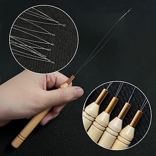 Design unico: piccolo e squisito infila ago per extension con manico in legno, design antiscivolo, comodo da tenere, non cade facilmente, molto flessibile e comodo da usare.