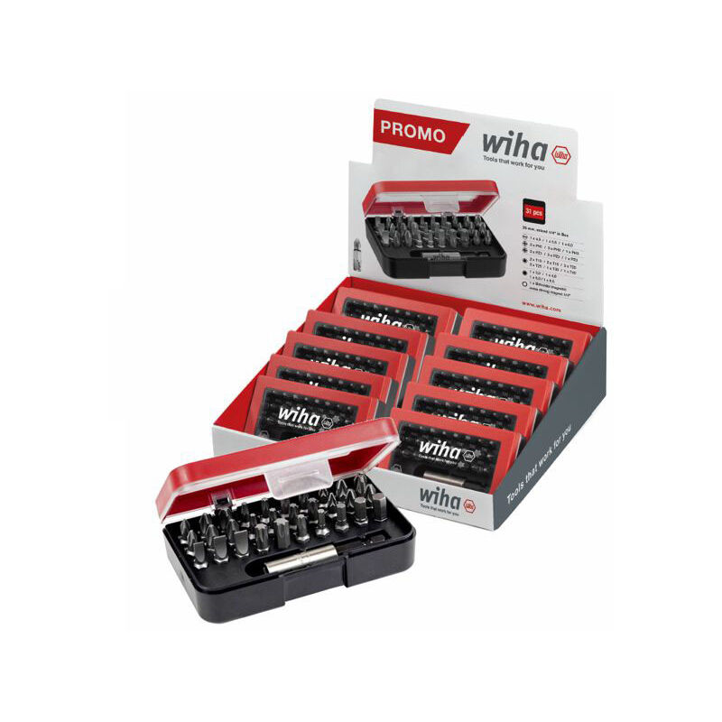 Composizione: T Pz 3 PH Pz 6 PZ Pz 6 TX Pz 11 Es Pz 4 Portainserti magnetico mm 60 Attacco 1/4 - Lunghezza inserti mm 25 Inserti Valigetta 44633 Pezzi 31 Sr Pz 31