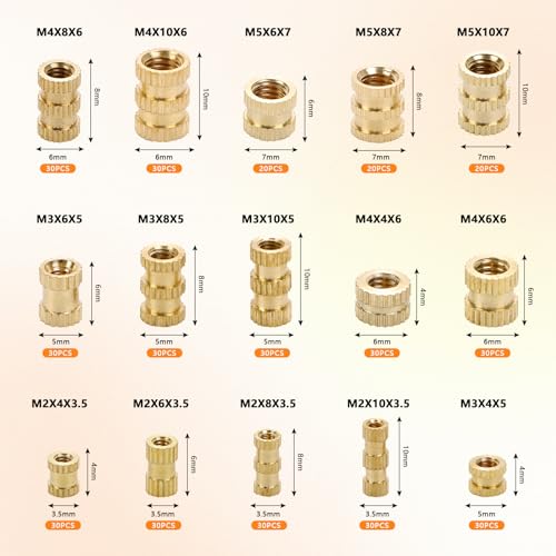 420 Pezzi Inserto Filettato, M2 M3 M4 M5 M6 Dadi Zigrinati in Ottone, Boccole Filettate, Dado a Pressione Filettatura Femminile Zigrinata Ottone, Dado Assortimento Kit per Parti di Stampante 3D