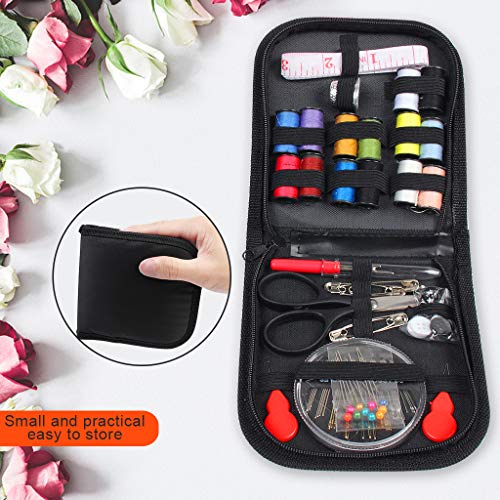XYGK 72 Pezzi di Insieme da Cucito con Mini Valigia & Accessori avanzati per Cucito. C'è 14 Bobine, 30 Aghi da Cucito, Adatto per Principianti, Viaggio in Famiglia, Uso di Emergenza ECC (Nero)