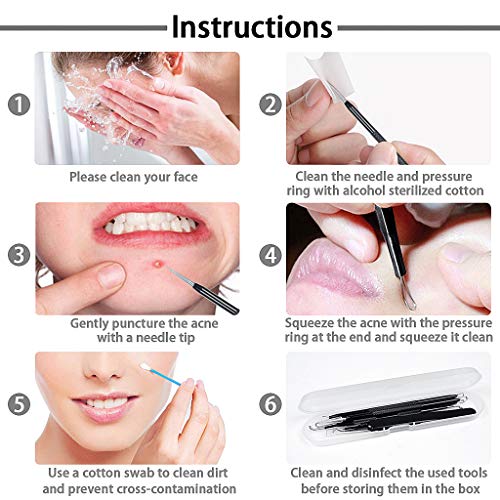 Acciaio inossidabile di alta qualità: Cinque Estrattori di acne si fabbricano in acciaio inossidabile di alta qualità, e si lucidano, hanno la maggiore durezza & superficie più liscia. E sono anticorrosivo, sicuro da usare, facile a pulire.