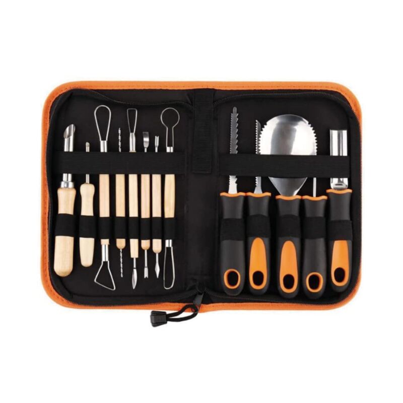 Facile da trasportare: lo strumento per intaglio jack-o-lantern portatile è progettato con una borsa per il trasporto, comoda da trasportare e riporre senza occupare molto spazio. Materiale: realizzato in acciaio inossidabile esteso e plastica, realizzato in acciaio inossidabile, lo strumento per intagliare la zucca è duro, resistente, stabile e robusto. Cosa ottieni: il kit per intagliare la zucca di Halloween contiene 1 scatola di bacche, 5 grandi strumenti per la lavorazione del legno e 8 piccoli strumenti per la lavorazione del legno per soddisfare le tue esigenze di utilizzo. Polvyle: strumento per la lavorazione del legno di zucca con borsa tote perfetta per tagliare patate, pomodori, zucca e altre verdure. Caratteristiche: gli strumenti per intaglio di Halloween includono strumenti per la lavorazione del legno dettagliati e strumenti generali per la lavorazione del legno, perfetti anche per i principianti, che aggiungono dettagli intricati e realistici ai disegni dei personaggi.
