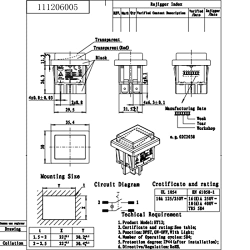 2 pezzi KEDU HY12 Interruttore a bilanciere ON OFF Interruttori a pulsante impermeabili con lampada 16(8) A 250V 10(6) A 400V 5E4 10A 125/250V CE