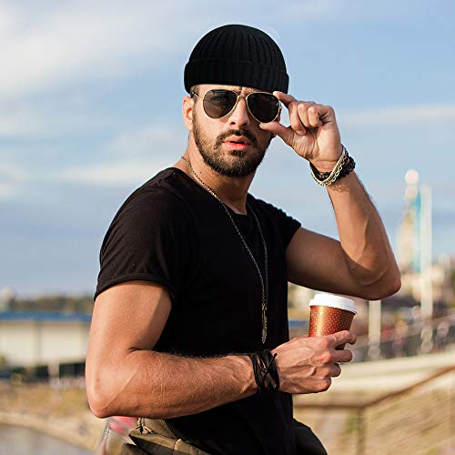 2 Pezzi Inverno Lana Maglia Trawler Beanie Cappello Breve Pescatore Skullcap Knit Beanie Cap per Uomo/Donne nero e nero. Taglia unica