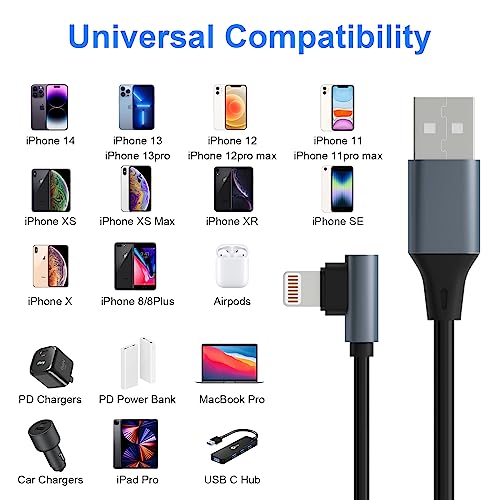 【Cavo dati iPhone Apple Carplay a 90 gradi】: Gomito per un facile accesso Presenta un design innovativo del gomito per evitare danni al cavo in modo da poter tenere comodamente il telefono per giocare e navigare in streaming mentre il telefono è in carica.