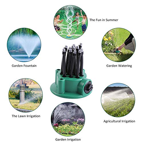 【Irrigatore per Prato con Foro per Spruzzo 12x3】 Questo irrigatore ha 12 ugelli flessibili che è possibile regolare in qualsiasi direzione. La pressione dell'acqua è uguale in modo che la superficie si bagni uniformemente.