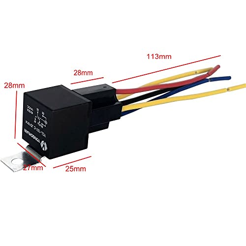 JZK 2 pezzi 5 pin JD1914 12V 40A Relè per auto con presa per cablaggio, 30/40A SPDT 5 pin relè per auto con fili etichettati a colori per autoveicoli, camion, furgoni, moto, barche