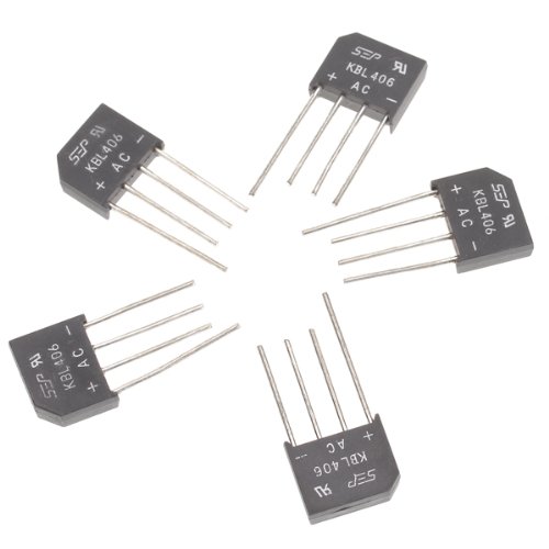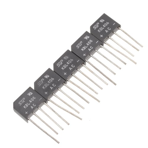 5pcs KBL406 raddrizzatori . picco di tensione inversa di 800V. La corrente di uscita massima media in avanti di questi raddrizzatori sono 4A @ Ta = 50 ℃.