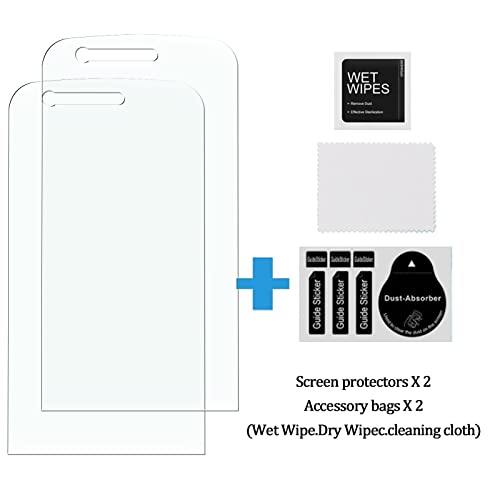 【La confezione include】 Nella confezione sono presenti 2 protezioni per lo schermo e 2 borse per accessori e ogni borsa per accessori include 1 salvietta umida, 1 salvietta asciutta, 1 panno per la pulizia