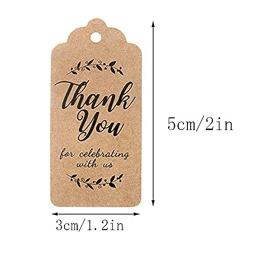 200 pezzi Kraft Gift Tags, Thank You For Celebrating With Us Paper Label for Birthday Wedding Party Hanging Tag with 40 Meters Jute Twine (Brown)