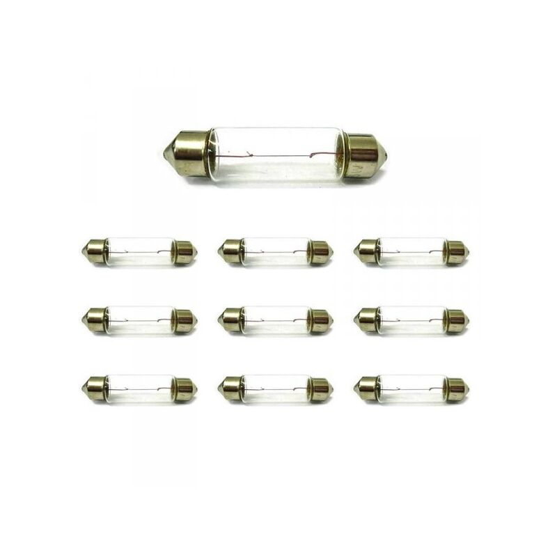 10 Pezzi Lampada Alogena T11 C5W 24V 5W 36mm Siluro Festoon SV8,5 STOCK da 10 Lampade Alogene (10 pezzi) Siluro T11 24V 5W 36mm - Ottima Qualità - Vita media di circa 400 ore - ATTENZIONE: in questa inserzione si vende uno STOCK di lampadine (cioè 10 pezzi) modello Siluro T11 24V 5W 36mm. Abbiamo a disposizione tutti i modelli di lampadina 12V e 24V: H1, H3, H4, H5, H6, H7, 12V W5W, 12V W1.2W, 12V 5W, 12V 10W, C5W 36MM, C5W 39MM, C5W 41mm, P21W, PY21W, P21/5W, W21W, WY21W, W21/5W, T4W, ecc... ecc...