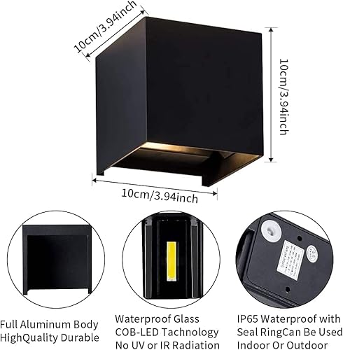 ✔【Risparmio energetico】: La sorgente luminosa è COB LED Chip, molto risparmio energetico e protezione ambientale,il driver LED con protezione da cortocircuito, protezione da sovraccarico protegge il design per garantirne la sicurezza. La lampada da parete per esterni da 12W non è dimmerabile, ma è possibile regolare l'angolo di emissione della luce.