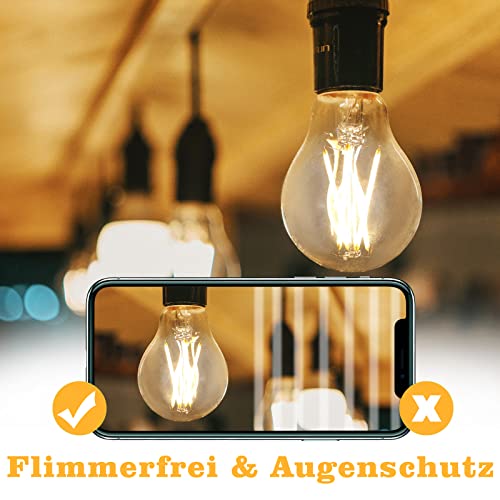 Luce bianca calda: questa lampadina Edison retro emette una luce bianca calda a 2700K. La luce morbida e calda è innocua per la pelle e gli occhi, ha un aspetto romantico e crea un'atmosfera piacevolmente luminosa e accogliente.
