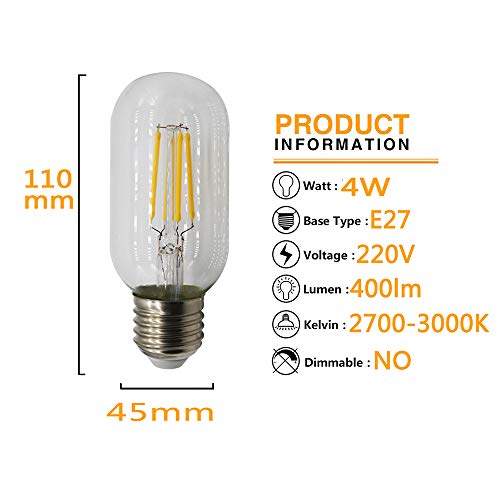 1 Pezzi Lampadina Filamento LED E27, 4W Equivalenti a 40W, 400Lm, 2700-3000K, Luce Bianca Calda, XINYANSEE T45 Stile Vintage, Non Dimmerabile