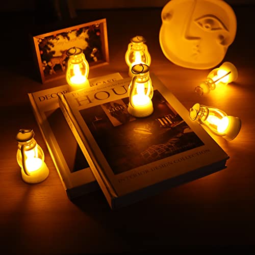 6 Pezzi Lanterna d'epoca, Lanterne LED tremolanti a batteria, Mini Lanterne a sospensione Decorazioni per interni all'aperto(Bianco)
