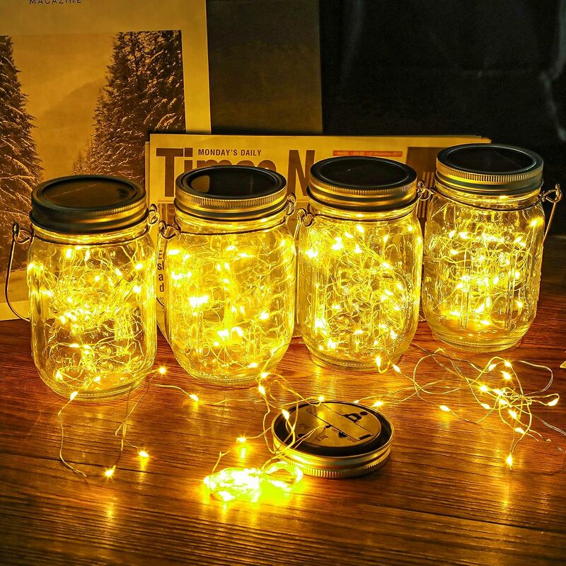 LUNGA DURATA - - Le luci solari sono realizzate in vetro robusto che non arrugginisce se utilizzato all'aperto per anni e può resistere bene alle intemperie, come umidità, pioggia e forti venti.È perfetto per la decorazione di terrazze e giardini. 【Tappi di bottiglia solari】 Le luci Mason Jar sono dotate di 30 luci a stringa LED integrate con luce bianca calda costante, alimentate da pannelli solari ad alte prestazioni. Immagazzina energia dal sole durante ilgiorno e si accende e si spegne automaticamente. 【FACILE À INSTALLER】 -La lanterne de verre solaire est une excellente idée pour la décoration intérieure et extérieure, comme les jardins, les patios, et peut également être affichée lors de mariages, fêtes, Noël et autres festivals ou occasions, voipuoi appenderlo ovunque tu voglia esporlo. [Nota utile] Si prega di consentire una deviazione di misurazione di 1-3 cm dovuta alla misurazione manuale. - Il colore effettivo è leggermente diverso dalle immagini sopra a causa dei diversi