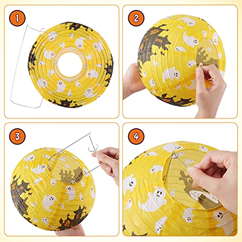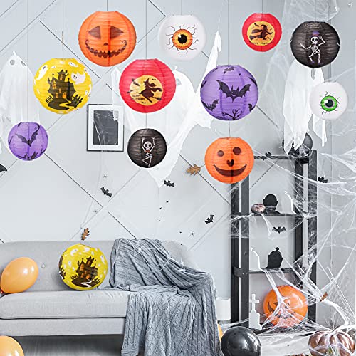 12 Pezzi Lanterne di Carta di Halloween, Diametri di8/10/12in Luci Lanterna con Zucca Figura, Halloween Decorazione per Bambino, Giardino, Albero, Porta,Finestra