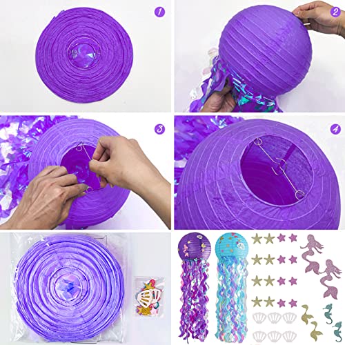 2 Pezzi Lanterne di Carta Sirena, Lanterne a Forma di Medusa con Nastro Lucido Decorazioni per Compleanno a Tema Oceano, Lanterne Carta da Appendere per Baby Shower Feste