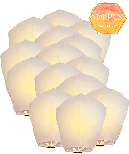 14 Pezzi Lanterne cinesi del cielo, volanti Lanterne di carta - ecologiche, biodegradabile, fatte a mano - adatte per mandare bambini, matrimoni, feste di compleanno e auguri di Capodanno - bianche