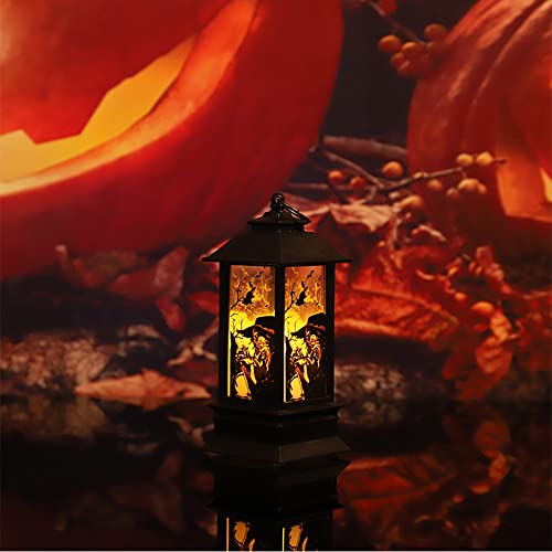4 Pezzi Lanterne Halloween Luce LED, Halloween Decorazioni Casa Interno Notturna, Halloween Zucca Luminosa da Esterno Appendere, Addobbi Giardino Decorative Lanterna Strega con Batteria (Luce Calda)