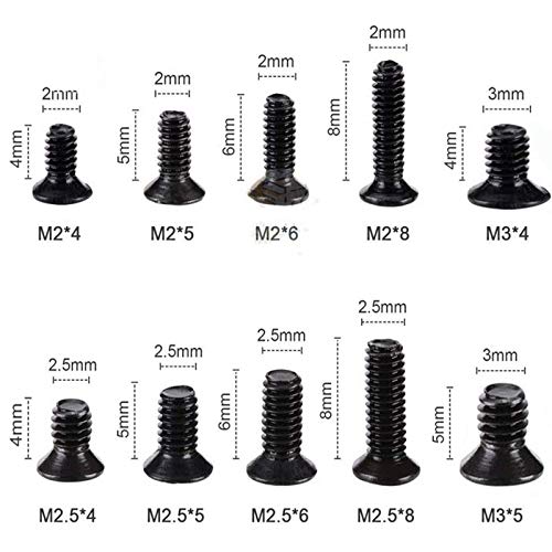 300 Pezzi Set di Viti per Laptop, Viti Meccaniche a Testa Svasata in Acciaio Inossidabile Nero, Viti M2 M2.5 M3 a Testa Piatta Con Impronta a Croce per Riparazione Laptop