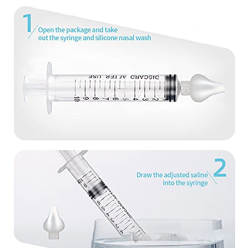 Facile da usare: aprire la confezione e rimuovere la siringa e il detergente nasale in silicone. Inserire la soluzione salina nella siringa. Inserire l'aspiratore nasale nella cavità nasale con la siringa in mano, inclinare leggermente la testa in avanti, aprire la bocca e spingere fuori la soluzione salina. Dopo il risciacquo, utilizzare un tovagliolo di carta per asciugare il liquido in uscita.